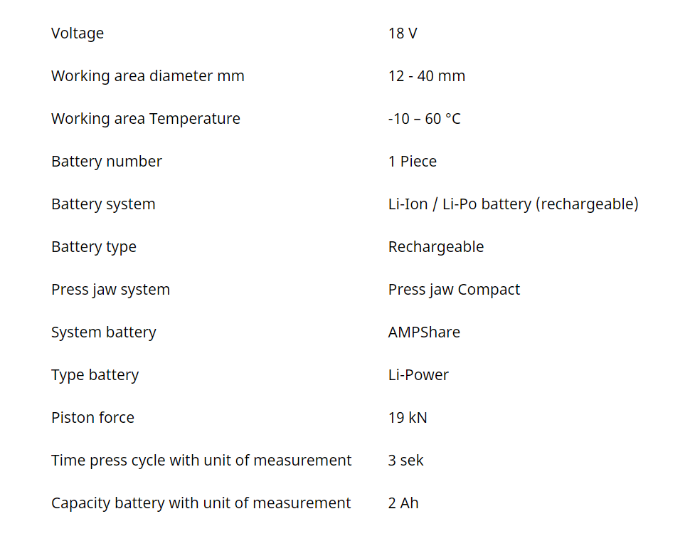 The romax compact III AMPShare presses fittings with a piston force of 19 kN and a press cycle of 3 seconds. Constant pressing force over the complete pressing cycle is guaranteed by Constant Force Technology (CFT). Real-time data acquisition of relevant machine parameters and convenient creation of press protocols directly on site via Rothenberger App by connectivity . The optimized compact design and perfectly balanced weight make installation work over longer stages a breeze.