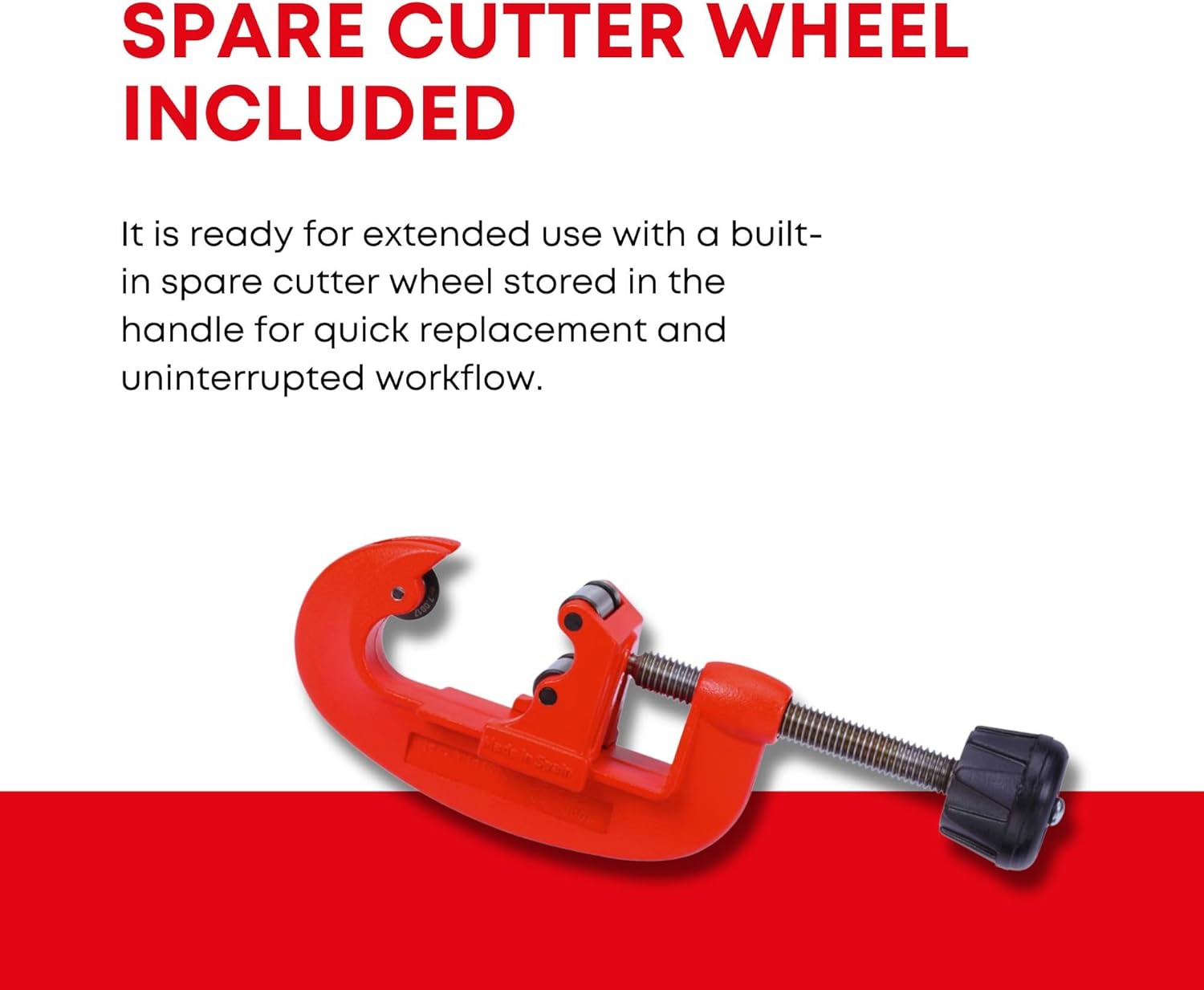 - Retractable internal deburrer and spare cutter wheel in handle: Always within reach