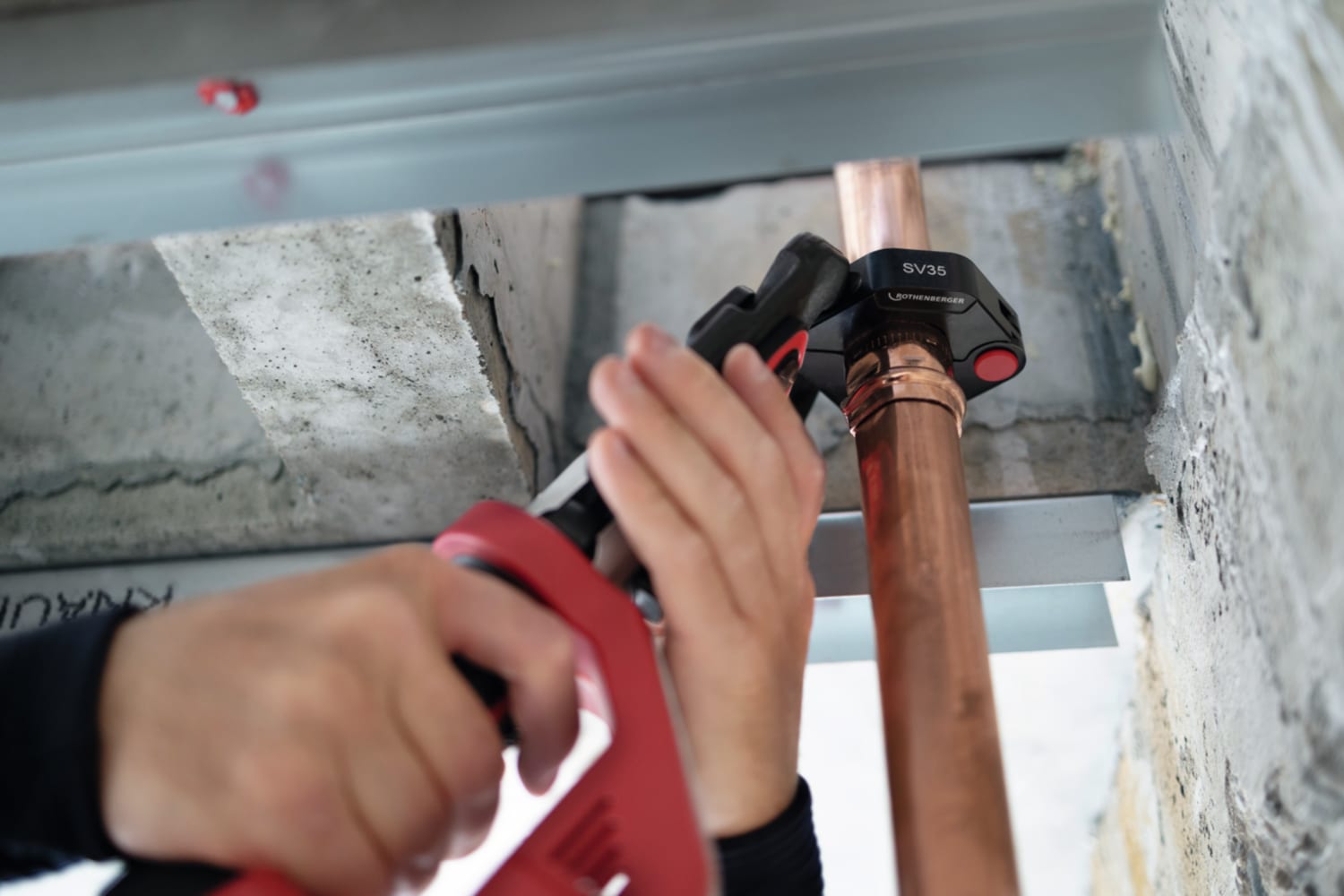 The high-quality SV profile press rings have been specially designed and developed by ROTHENBERGER for pressing applications on metallic piping systems. With this press ring design, users/applicants are ideally equipped to press fittings in complex installing situations properly.