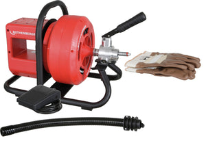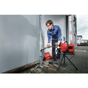 The RODRUM VarioClean is a compact drum machine for removing blockages in pipes from 40-100 mm diameter. Through its clean and discrete work it is ideally suited for HVAC businesses, janitors, drain cleaners or for use in households, catering and hotels or public buildings because the dirty spiral moves into the drum during the return.