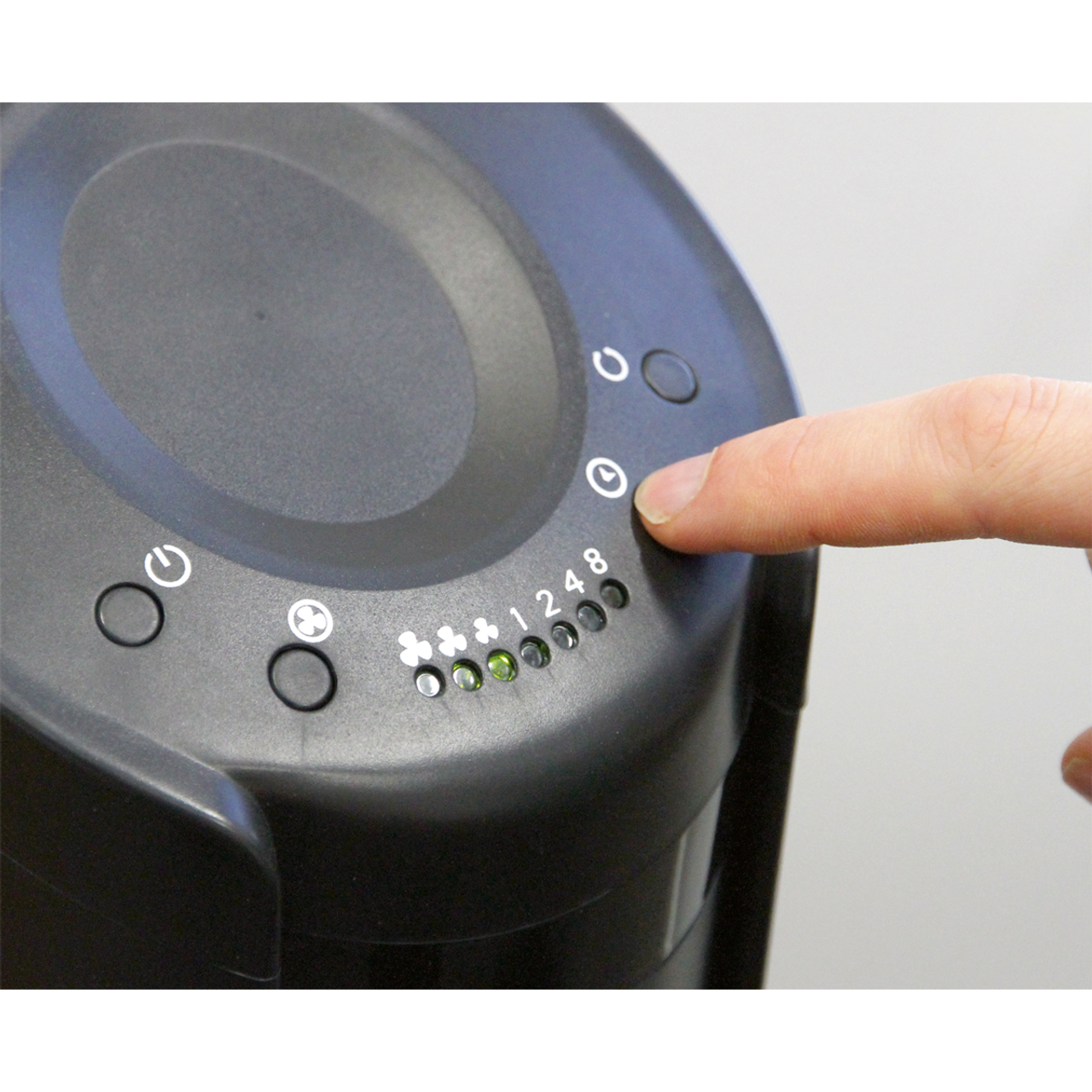 • Remote control operation with 3-speeds and an 8 hour timer.