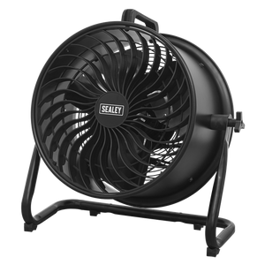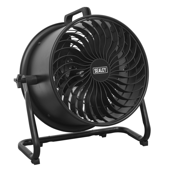 This 3-speed high velocity drum fan is lightweight and portable, with rubber feet for stability. The handle and 360° tilting stand allow for precise control of airflow. The carefully balanced and fully guarded aluminium blades ensure quiet and safe operation. It is equipped with a 3-pin plug and can be used in various settings such as industrial, commercial, agricultural, automotive, workshops, showrooms, and homes.