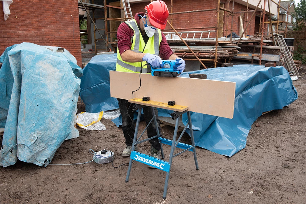 Lightweight, strong, portable workbench ideal for site work. Folds easily for storage and transportation. Includes 2 x worktops. Worktop size 560 x 110mm. Max load 100kg. Requires assembly.