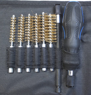 Includes 18 Spiral Tube Brushes - 6 Brass - 6 Stainless Steel - 6 Nylon. * Sizes 1132", 7/16", 33/64", 19/32", 43/64", and 49/64"