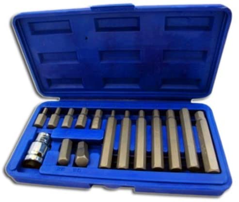 Toolzone 15Pc 1/2" Dr Hex Bits With Socket In Case 1pc1/2" Drive Adaptor. 7pc Short Bits (30mm Long)4,5,6,7,8,10,12mm 7pc Long Bits (75mm Long)4,5,6,7,8,10,12mm