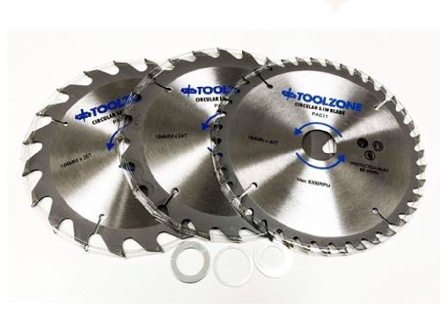 Toolzone PA021 3PC 184mm TCT Circular Saw Blades 20, 24 & 40 Teeth