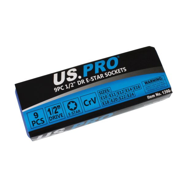 US PRO 1390 9pc 1/2" Dr Star E Torx Socket Set E10-E24