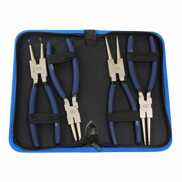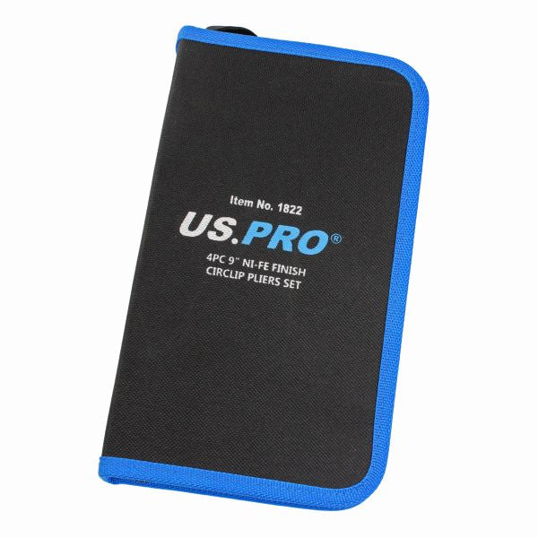 US PRO 1822 4pc 9" Ni-Fe Finish Circlip Pliers Set In Zip Case