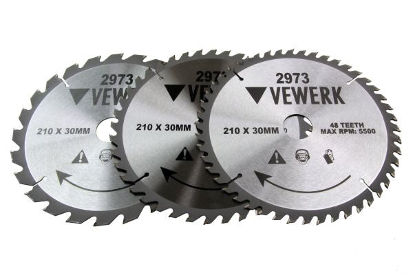 Vewerk 2973 3 Pack - 210 X 30mm Tct Circular Saw Blade 24T 40T 48T