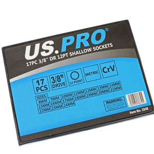US PRO 3248 17pc 3/8" Dr 12Pt Shallow Sockets 8 - 24mm