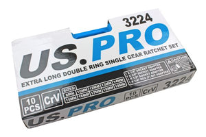 US PRO 3224 10pc Extra Long Double Ring Single Gear Ratchet Set