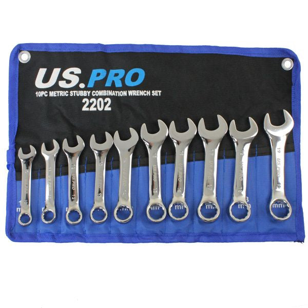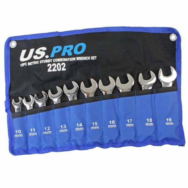 US PRO 2202 10pc Metric Stubby Combination Wrench Set 10-19Mm