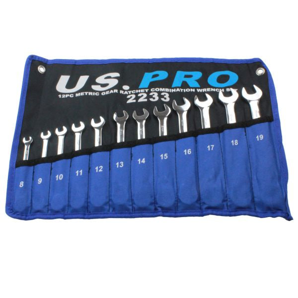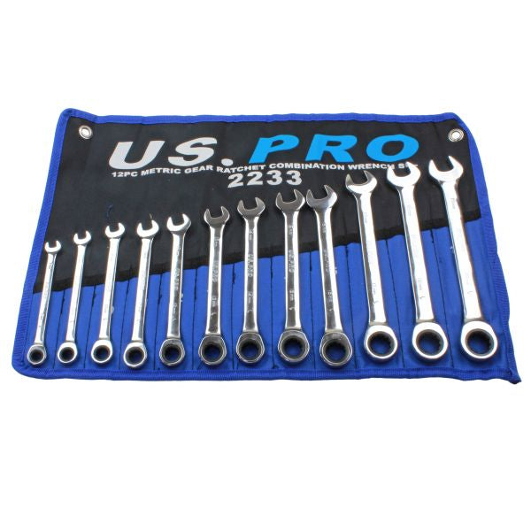 US PRO 2233 12pc Metric Gear Ratchet Combination Wrench Set