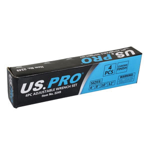 US PRO 2249 4pc Adjustable Wrench Set Chrome Finish
