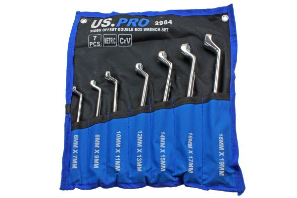 US PRO 3528 7pc Metric 75Deg Offset Double Box Wrench Set