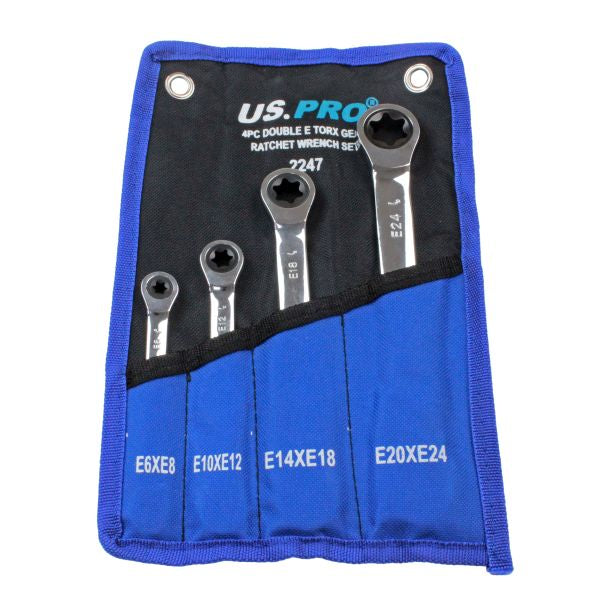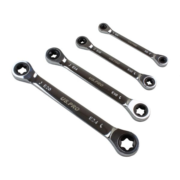 US PRO Tools 4pc Metric Double E-Torx Gear Ratchet Spanner Set E6 - E24
