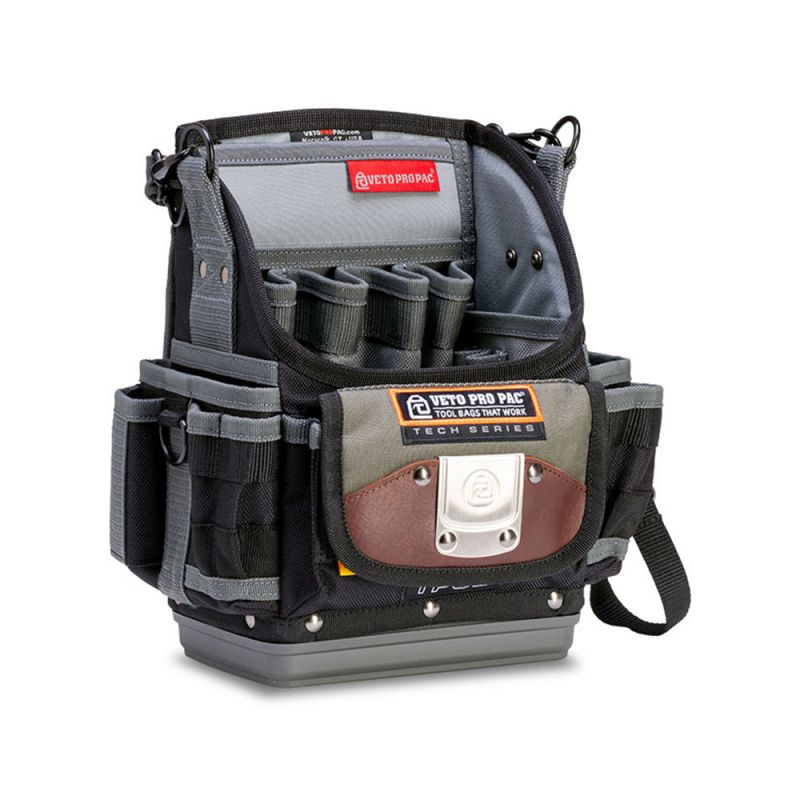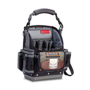 The Veto Pro Pac TP6B Compact Tool Pouch is a versatile, compact-sized tool pouch designed for professionals who need a reliable and organized storage solution. This one-sided, open-top pouch can accommodate a variety of tools, meters, fasteners, and wire nuts. It features exterior pockets, including a weather-resistant rear storage area perfect for sensitive probes.