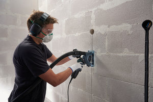 This Wolfcraft extraction hood transforms angle grinder operation by combining dust control with precision cutting. Engineered for 115mm and 125mm diamond discs, it features a robust polycarbonate shield meeting DIN EN 60745-2-22 safety standards. The integrated guide block delivers straight, controlled cuts with adjustable depth, whilst the lateral limit stop prevents deviation. Dust extraction occurs directly at the cut source via a 32-36mm hose connection compatible with industrial vacuum systems, dramatically reducing airborne particles. The spindle extension accommodates most standard angle grinders with tool-free installation and adjustable mounting angles for ergonomic positioning. A protective rubber sleeve safeguards the spindle, whilst the inspection window enables precise alignment to marked lines. Purpose-built for professionals demanding cleaner, safer grinding operations without compromising cutting accuracy.