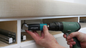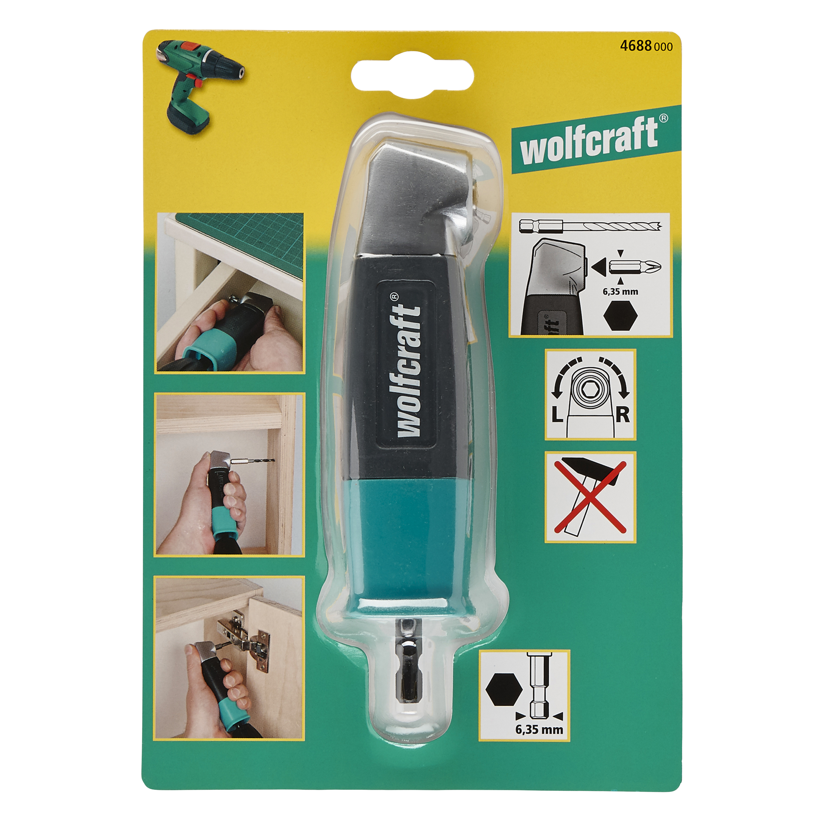 The Wolfcraft Angular Gear is an essential tool for drilling and screwing with precision, even in the most confined spaces. Its compact design, with a corner dimension of just 52 mm (including a 25 mm bit), makes it incredibly easy to handle, allowing you to work accurately in tight spots. The magnetic ¼" hexagon socket enables fast and secure tool changes, while the ball-bearing gear ensures smooth right/left rotation for both tightening and loosening.