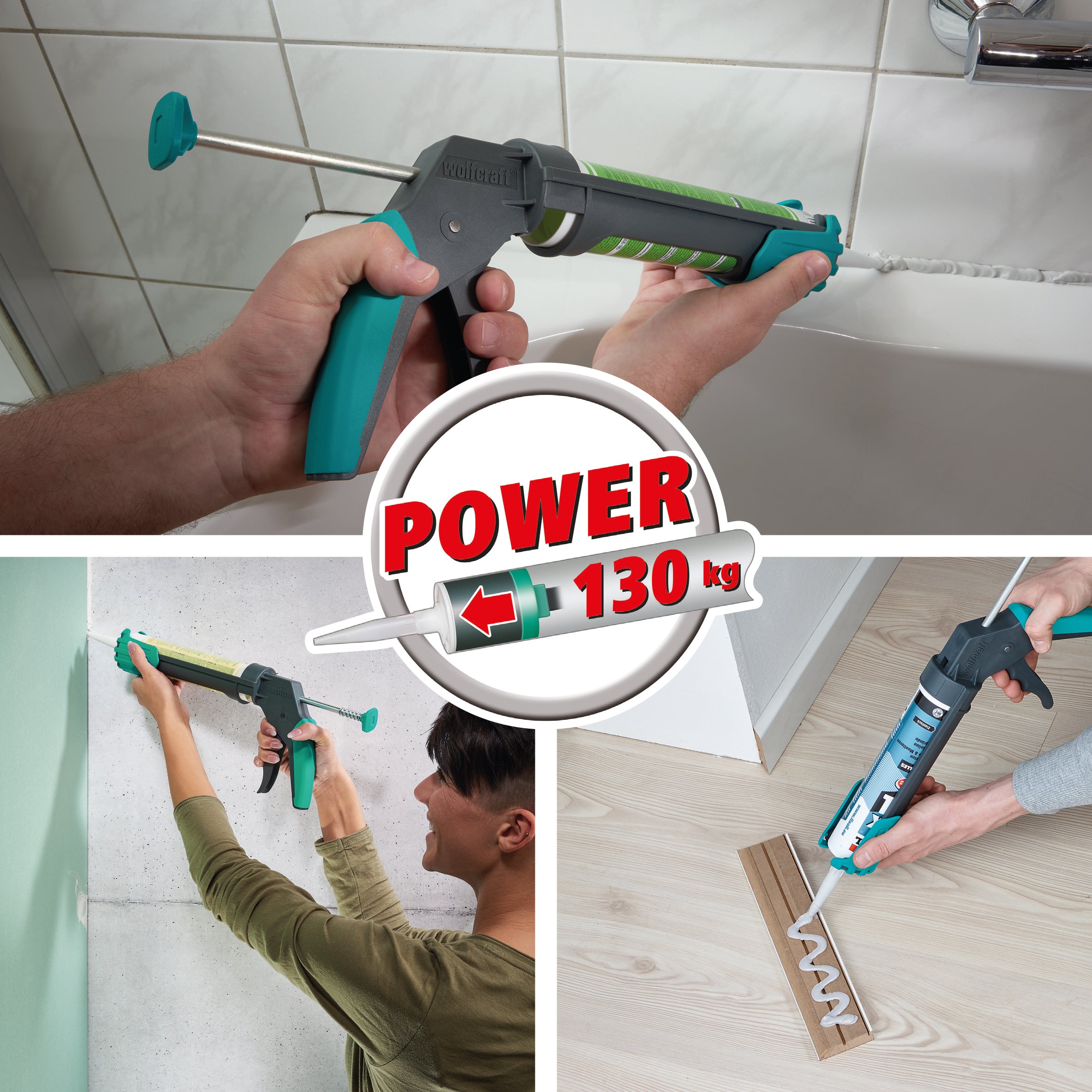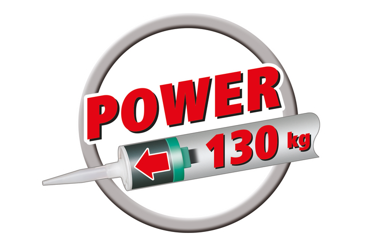 - 130 kg pushing pressure for easy application of silicone and acrylic from 310 ml cartridges