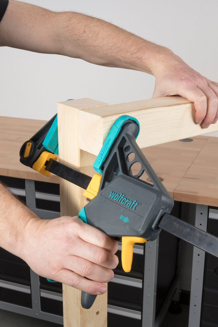 - Powerful one-hand clamp, ideal for woodworking and furniture construction