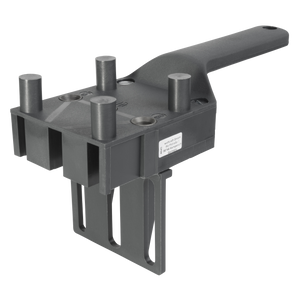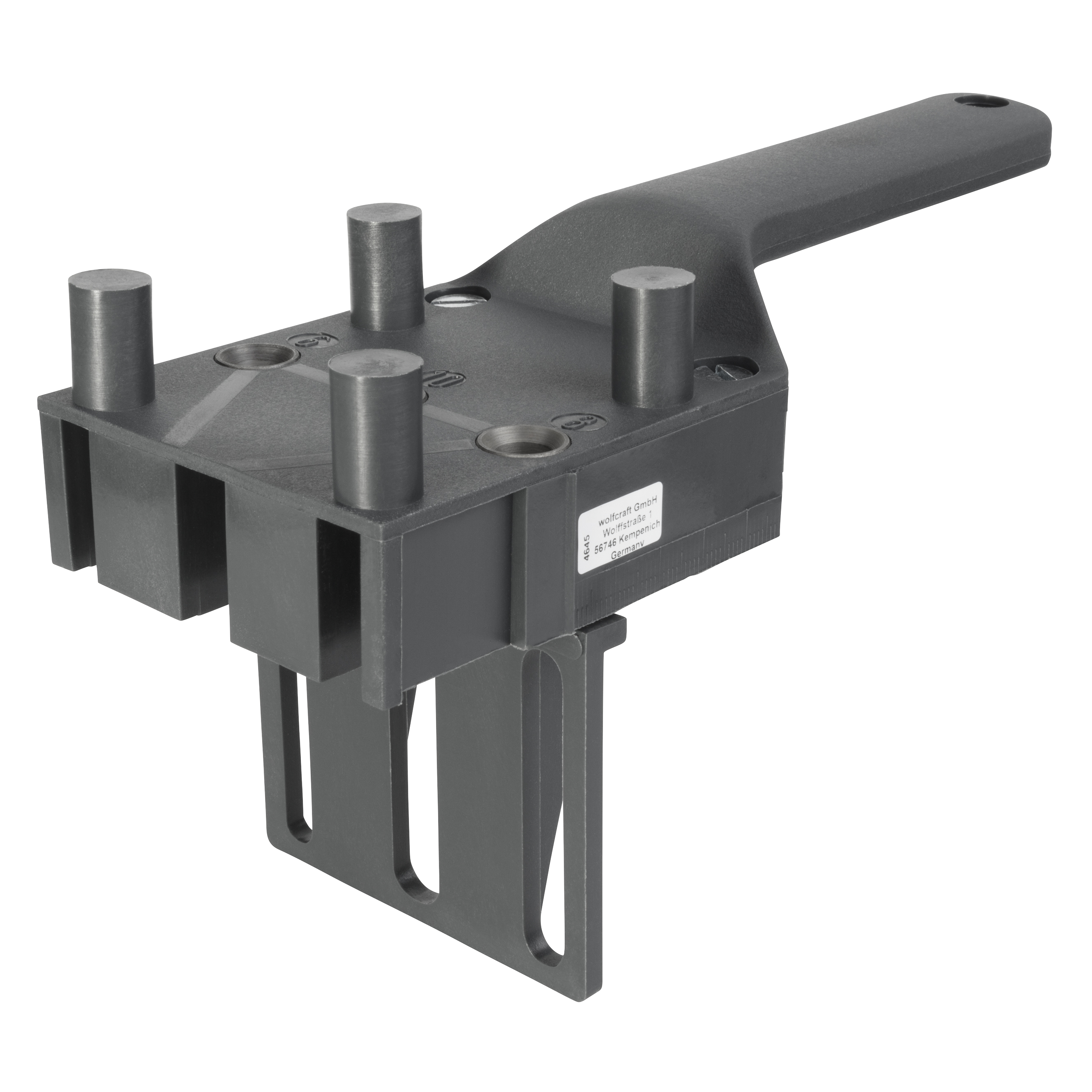 - Three integrated guide slots and steel guide bushes ensure perfectly aligned dowel holes